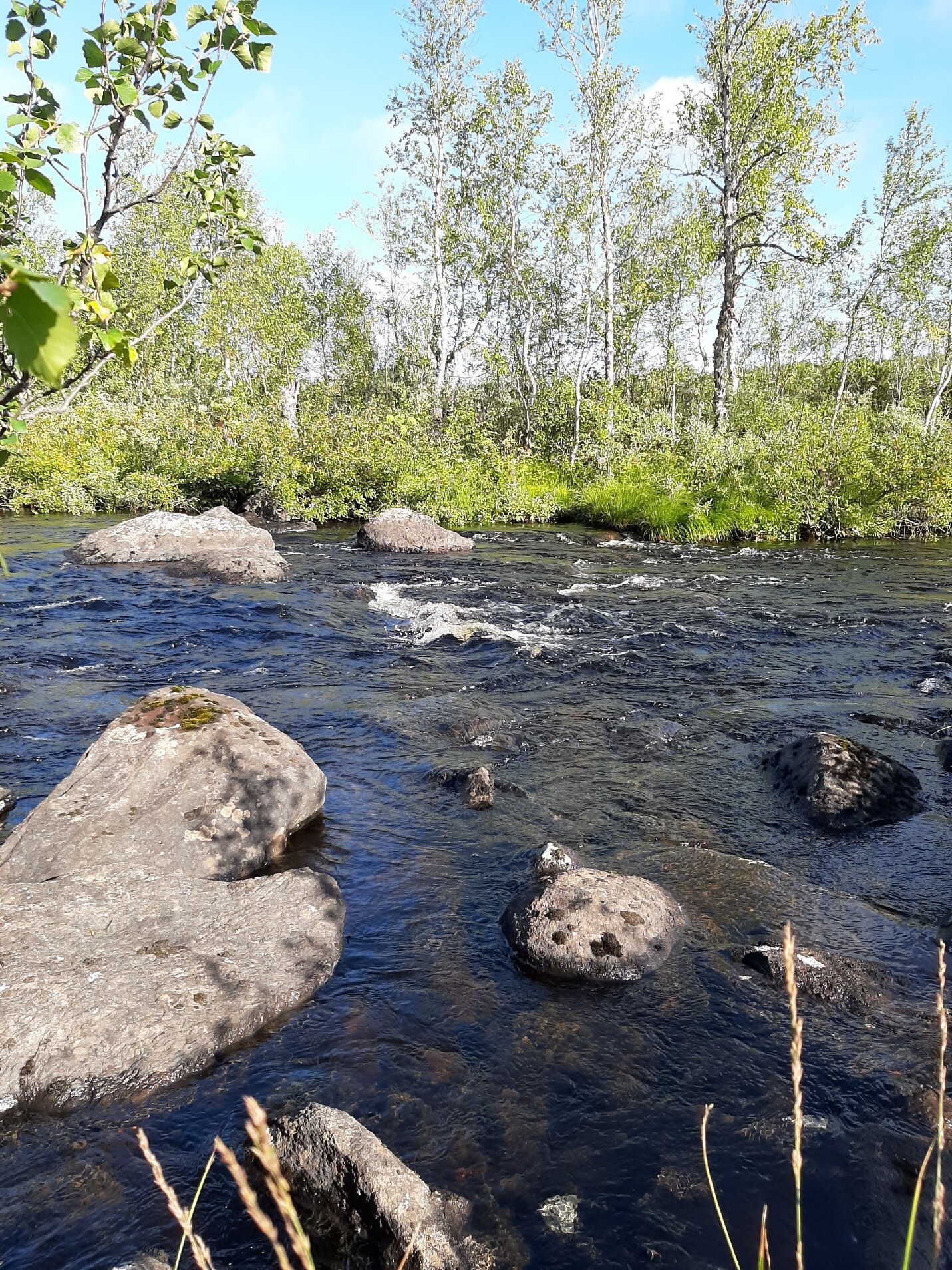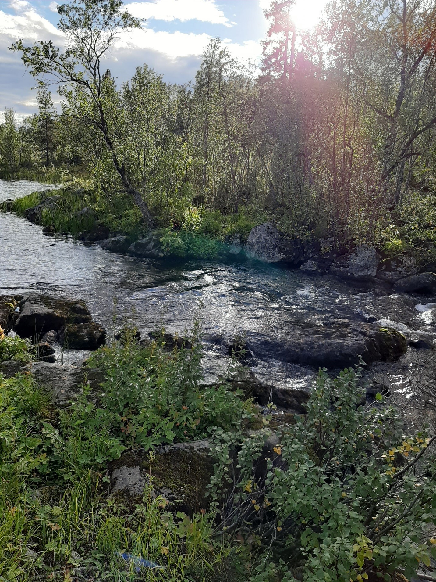 Скоростной сбор, умывалки откладываю до брода через Пяйвейоки, предстоящего через 3 км, и вот над головой сияет заполярное солнышко, а ноги начинают отсчитывать первые километры пути.