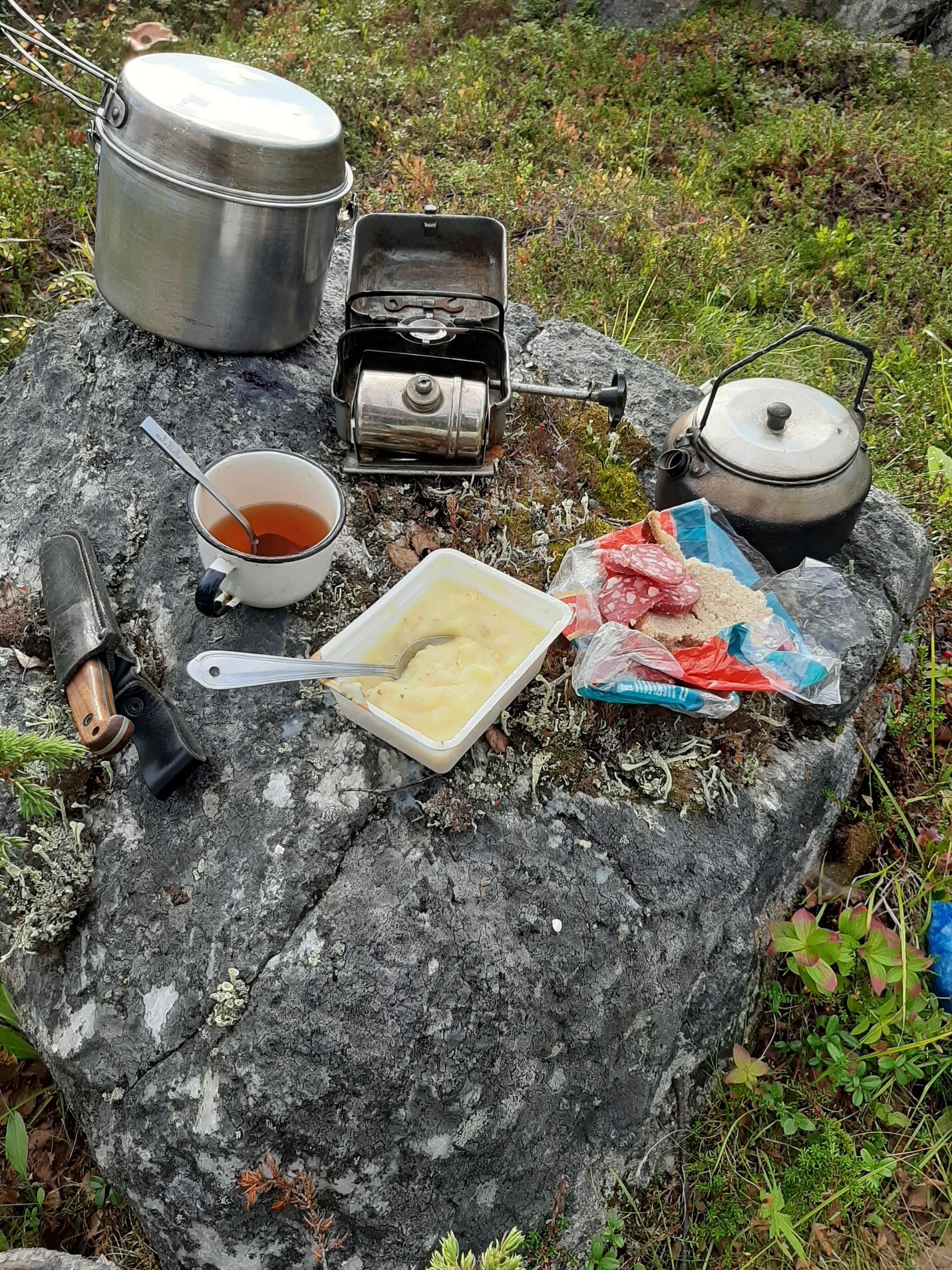 Чашка обжигающего чая, тающая во рту морошка, начинаю спуск с Тариги.